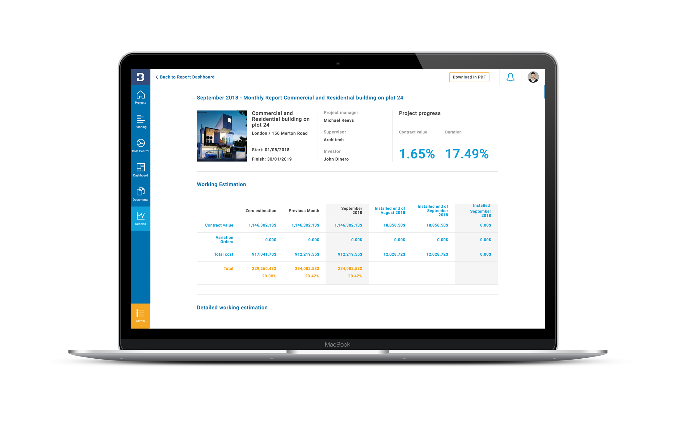 Buildcon gives you the most important metrics on your every project anytime and anywhere. There’s no need for you to wait that monthly meeting to see planned vs. actual, performance and profits on you projects. All those information are just a click away, precise and in real time. Knowing at any time how much revenue you can expect or how much costs are going to be will make it easy for you to make important financial decisions on a company level.